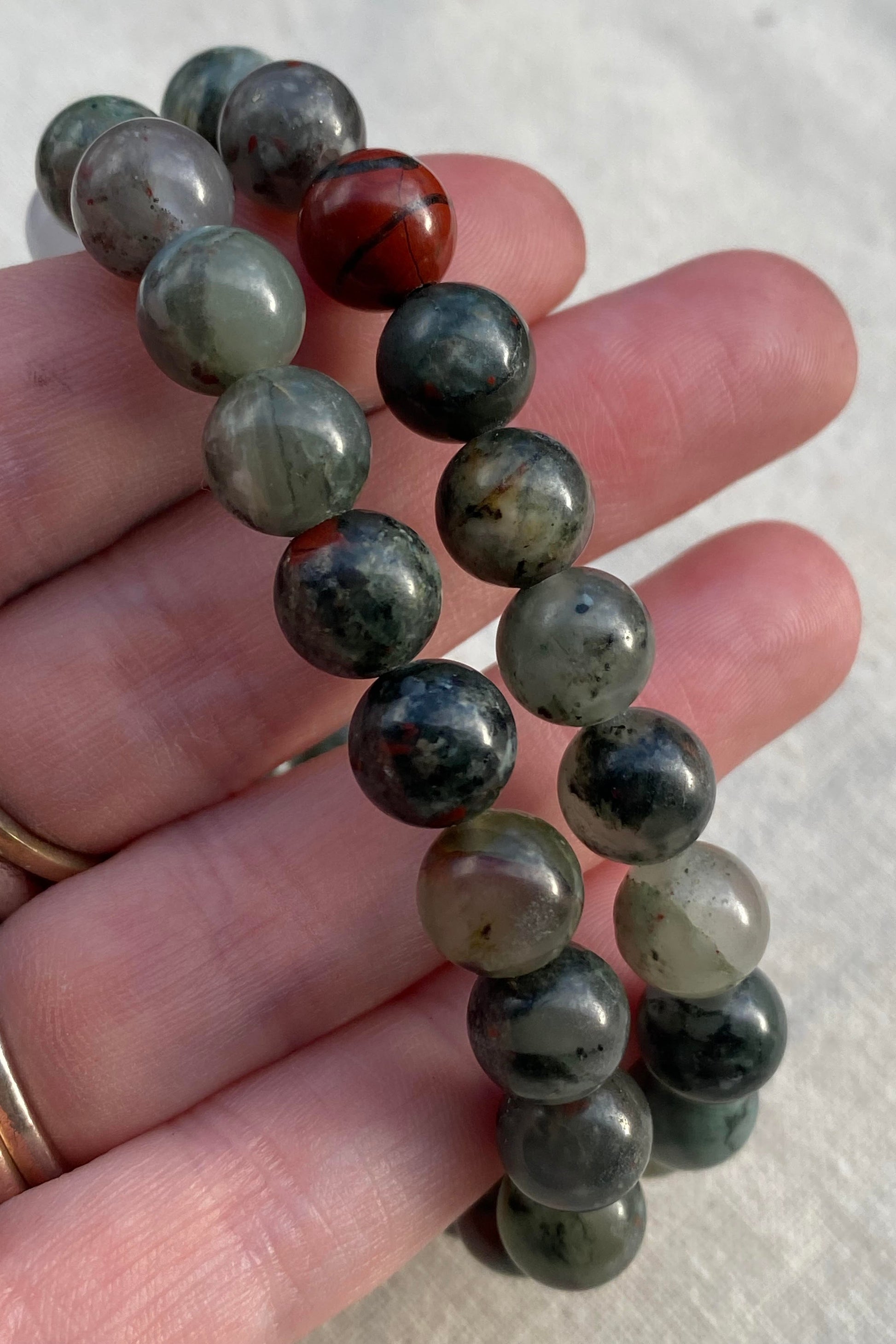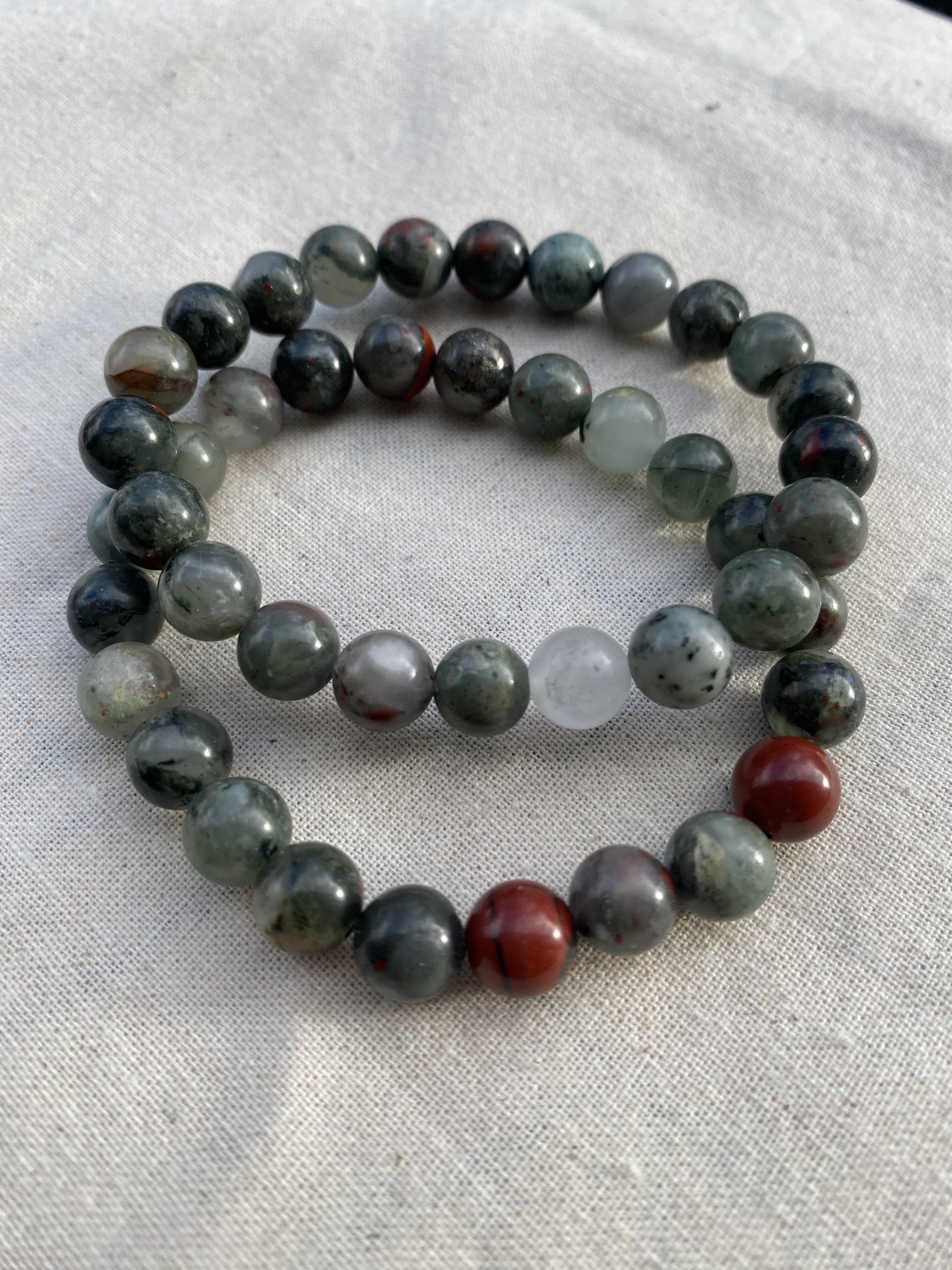 Bloodstone: Healing, intuition, creativity, vitality, courage, strength, grounding, root chakra, purifies auric field.