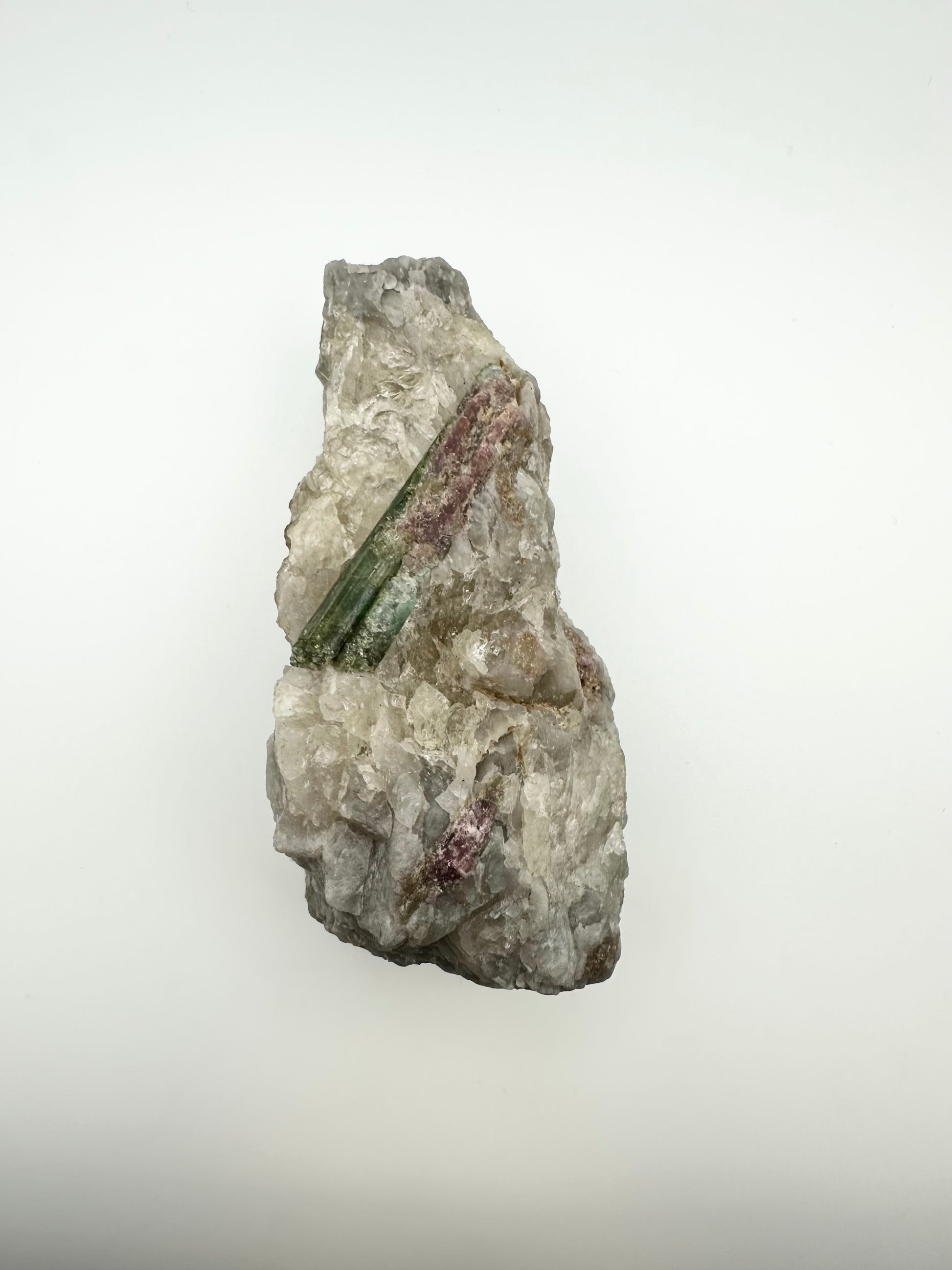 Healing and expanding the heart chakra, tourmaline inspires happiness and optimism. Embodying both Divine Masculine and Feminine energy, it promotes emotional balance and relational harmony. Serving as an energetic road-opener, tourmaline dispels stagnant energy, drawing abundance from the universe. A stone of success, love, and vitality, bicolor tourmaline helps us appreciate the beauty of life, others, and ourselves.