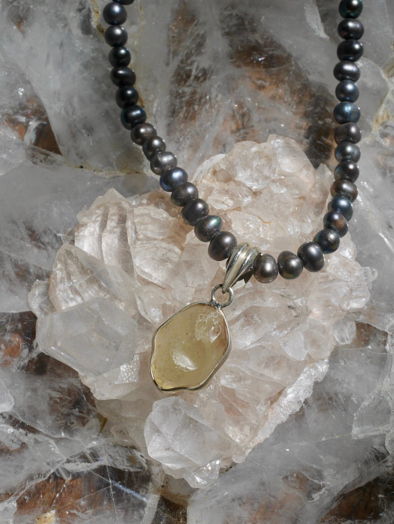 Libyan Desert Glass is a rare, high-vibration tektite prized for its powerful energy and connection to transformation. Use this pendant to: