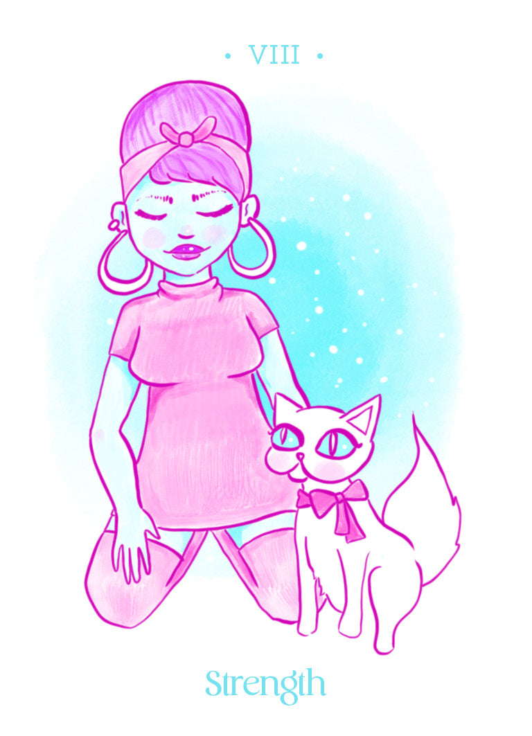 This sweet deck takes a look at what we perceive femininity to be, especially in tarot, and challenges it. It's cheerful and soft artwork encourage readers to find the bright side in the worst circumstances. Feminine energy can be strong and powerful yet vulnerable and emotional, and Velouria's Tarot takes the traditional gender binary in tarot and encourages the reader to take a new perspective on what 'feminine energy' means.