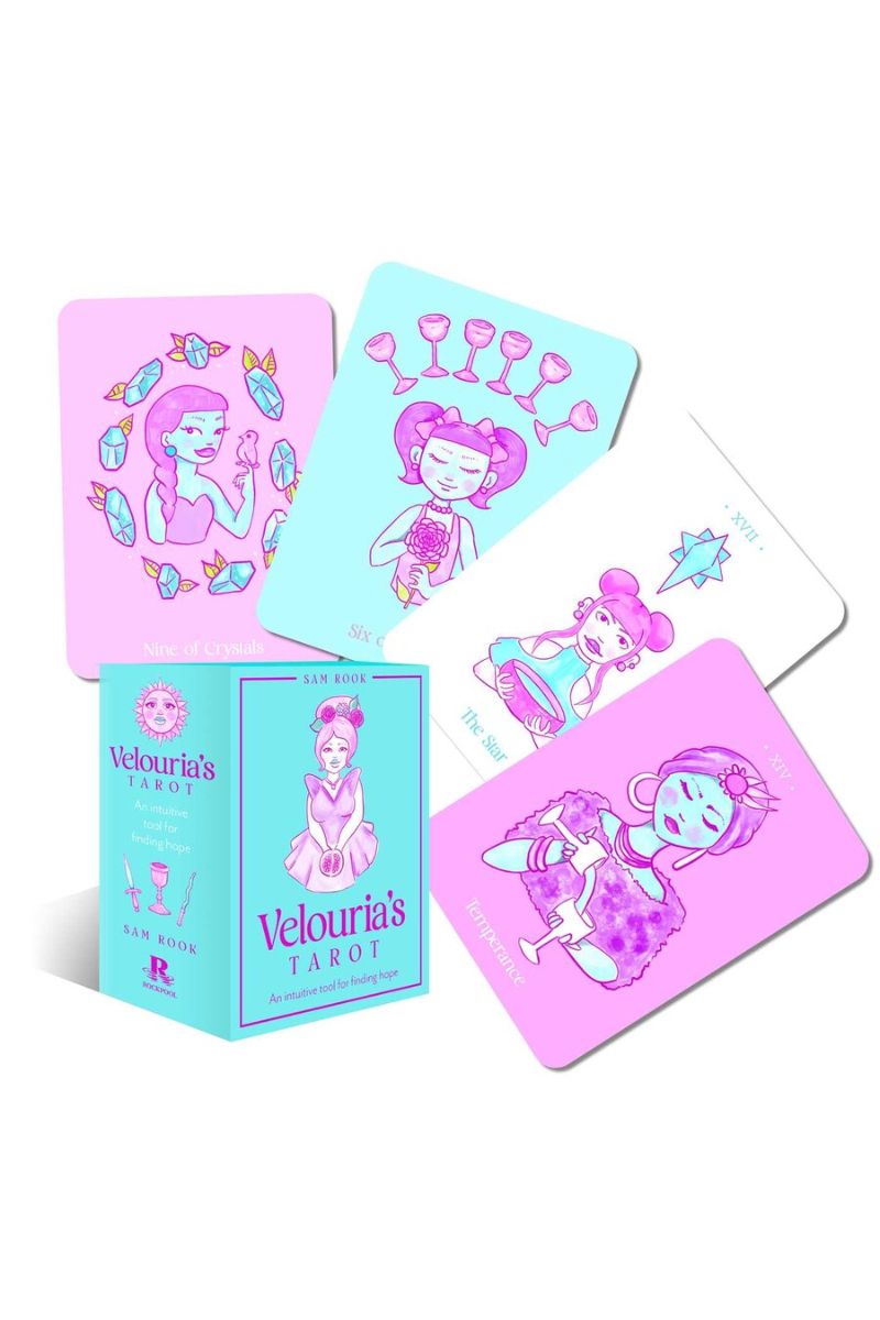 The artist created the deck during a difficult pregnancy and the global pandemic and the artwork reflects her journey of holding on to joy and hope, even during the most difficult of times. Velouria's Tarot's goal is to encourage every reader to use the tarot as a tool of self-improvement, spiritual exploration, through the lens of finding the silver lining in every situation.